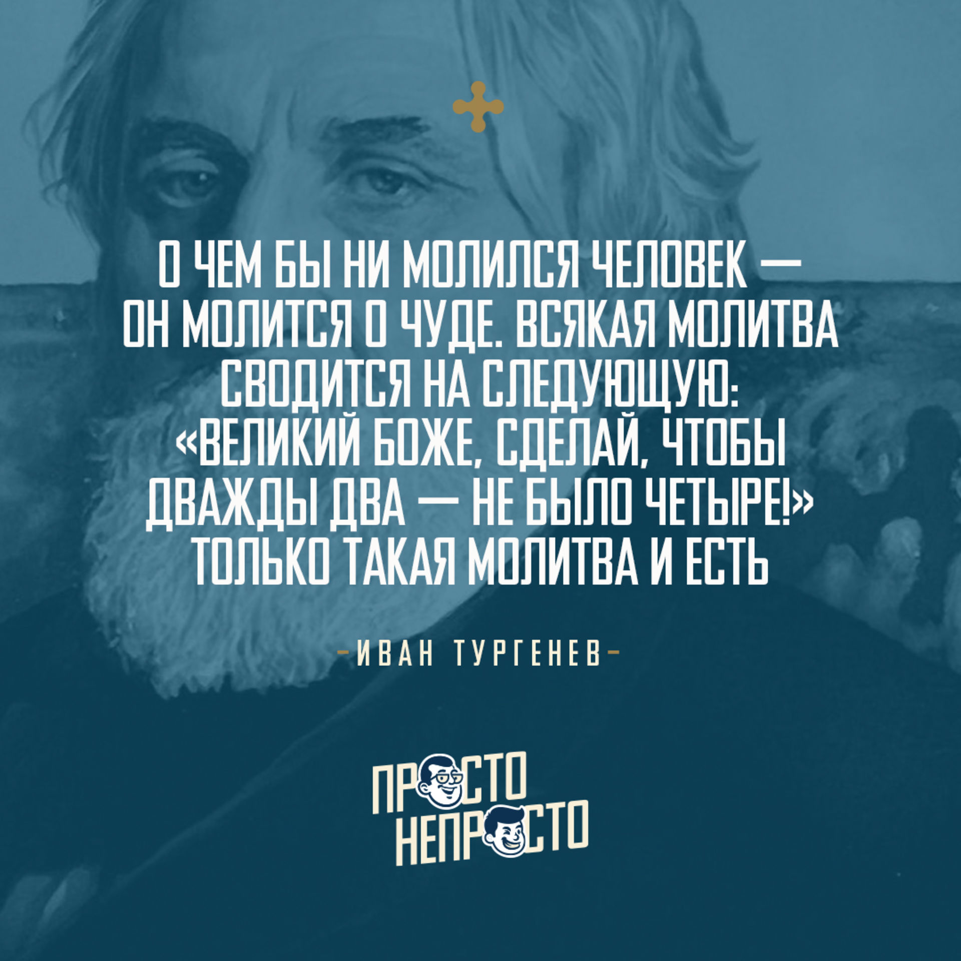 Иван Тургенев в стихотворении в прозе описывает глубину нашей зависимости от Бога в молитве, о том, что мы не только надеемся на чудо, но и во многом ожидаем его. И тот факт, что Тургенев считал эти слова «стихотворением в прозе», говорят, что по крайней мере для него они исходили не только из его разума, но и из самой глубины его сердца.